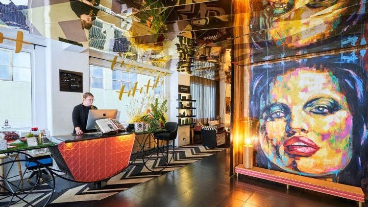 Contemporary art, swinging chairs and cherry-inspired lamps are among the hotel’s hallmarks.